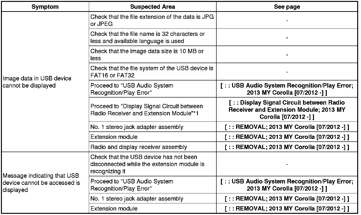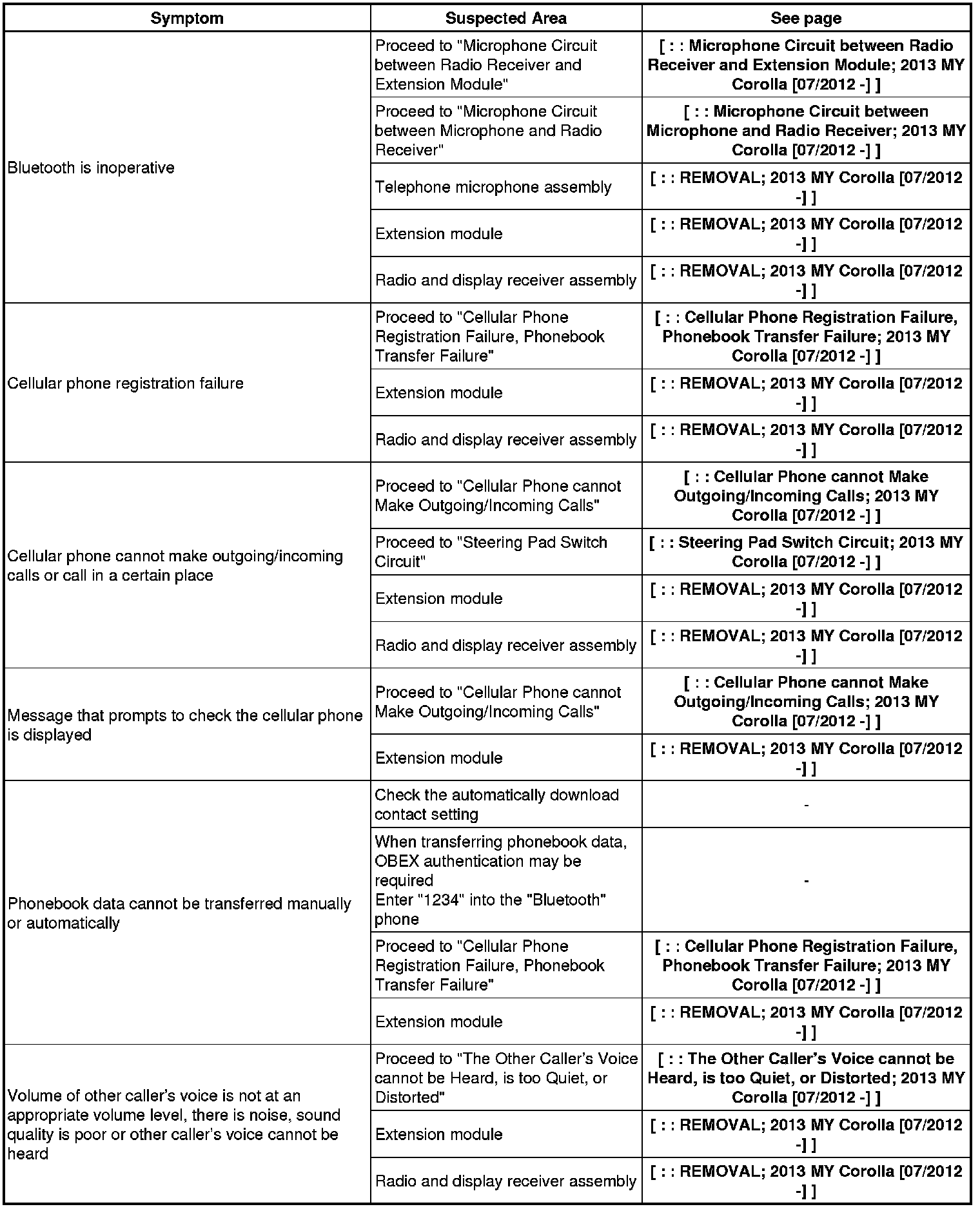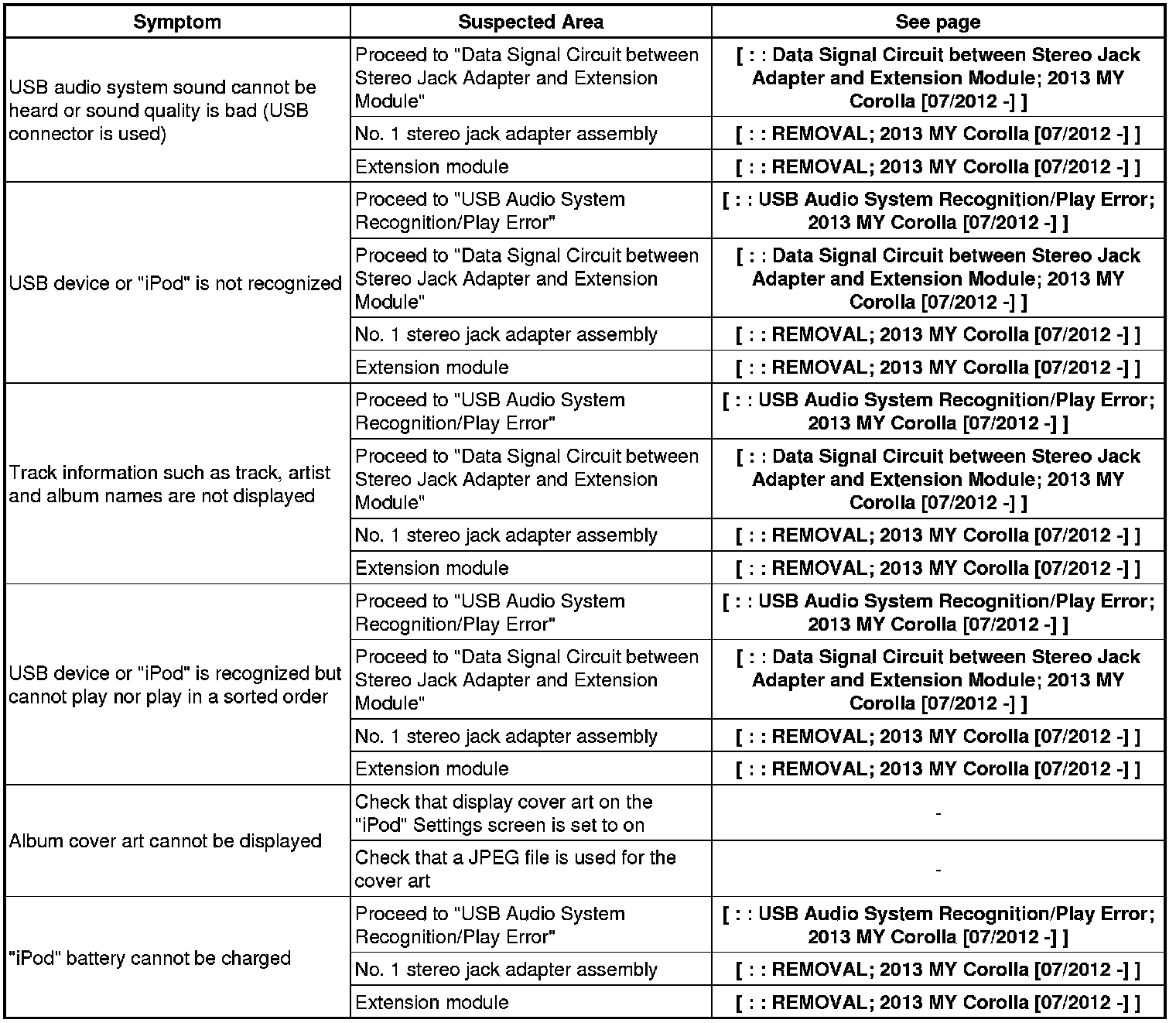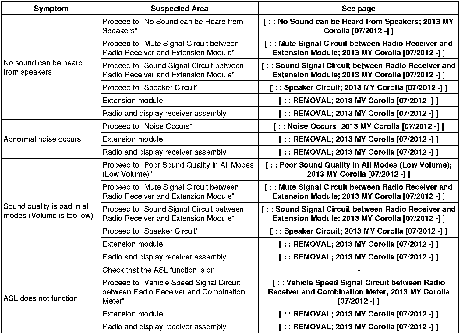 NAVIGATION / MULTI INFO DISPLAY: NAVIGATION SYSTEM: PROBLEM SYMPTOMS TABLE; 2013 MY Corolla [07/2012 -]