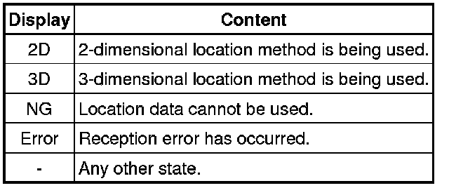 Information from a maximum of 12 satellites is displayed on the screen. This information includes the target GPS satellite number, elevation angle, direction and signal level.