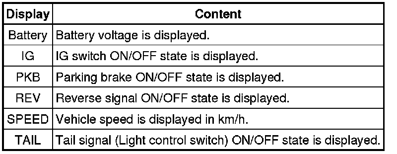(4) Vehicle Signal Check Mode Screen