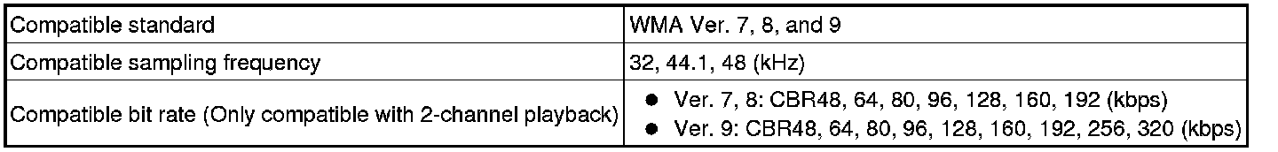 * As for MP3/WMA files written in any unlisted format, the contents of the files may not be played normally or the file names or folder names may not be displayed correctly.