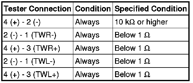 Connect all connectors to the speakers when performing an inspection. If the result is not as specified, replace the speaker.
