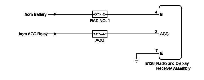 1. CHECK HARNESS AND CONNECTOR (RADIO AND DISPLAY RECEIVER ASSEMBLY POWER SOURCE)