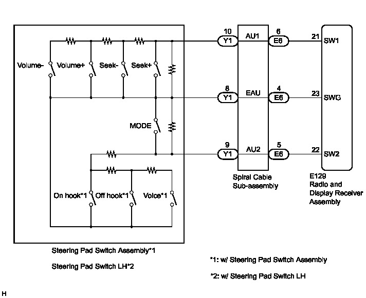 If there is an open in the circuit, the audio system cannot be operated using the steering pad switch assembly*1 or steering pad switch LH*2.