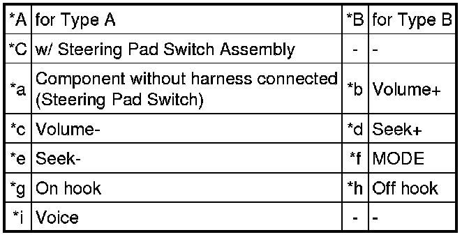 * *1: w/ Steering Pad Switch Assembly