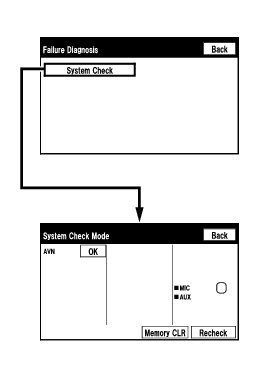 * When proceeding to view the results of another device, press the "Back" switch to return to the "System Check Mode" screen. Repeat the above step to view the results of other devices.