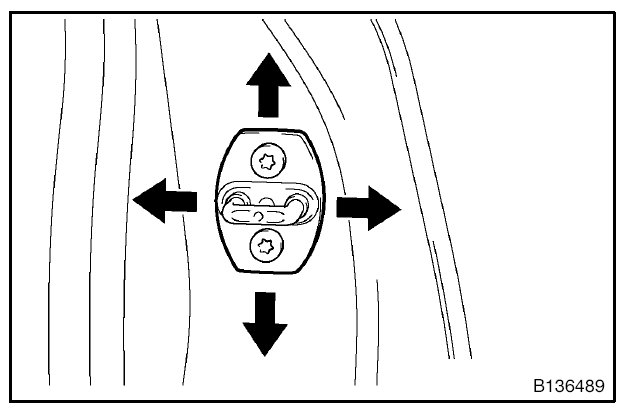 6. Using a "TORX" socket wrench (T40), tighten the striker mounting screws after the adjustment.