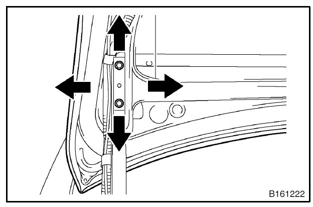 2. Tighten the hinge bolts on the vehicle body after the adjustment.