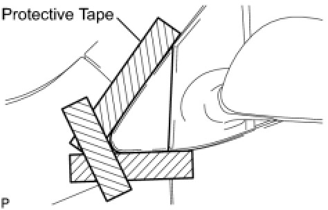 (a) Put protective tape around the front upper pillar cover sub-assembly.