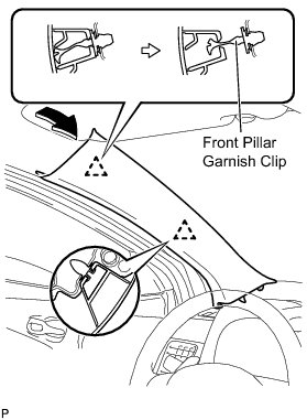 * Replace the front pillar garnish clips with new ones if they are removed from the vehicle.