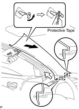 (a) Remove the adhesive tape from the roof headlining assembly.