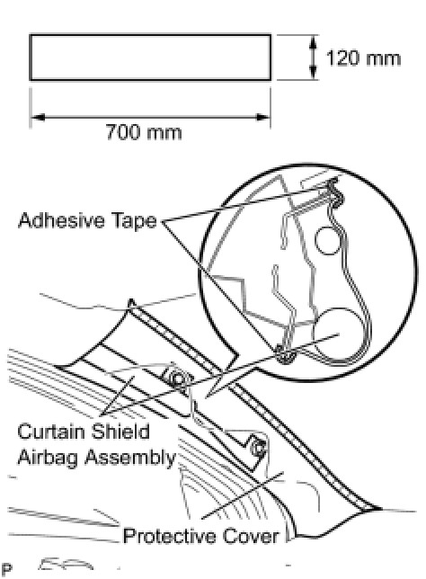 (1) Cover the airbag with a 700 mm (27.56 in.) x 120 mm (4.72 in.) cloth or piece of nylon and secure the ends of the cover with tape, as shown in the illustration.