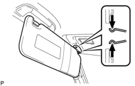 (b) Disengage the 2 clips and remove the visor assembly LH.