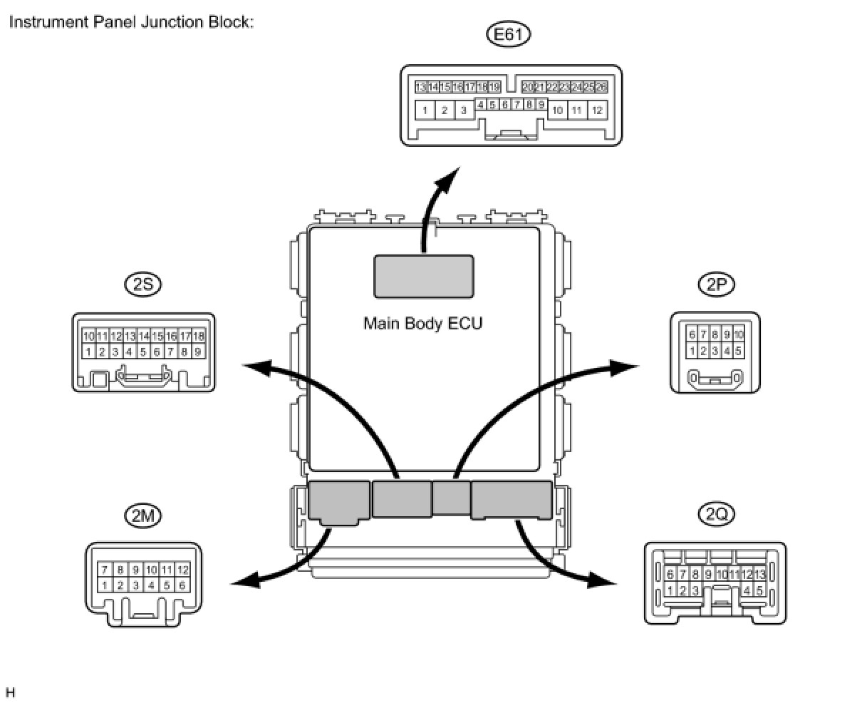 (a) Disconnect the 2A, 2B, 2C, 2E, 2F and 2G junction block connectors and E61 main body ECU connector.