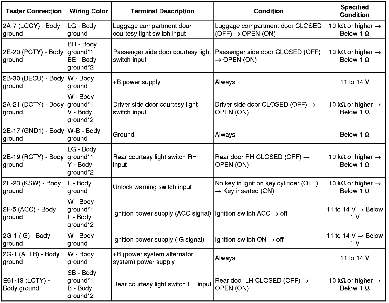 DOOR LOCK: WIRELESS DOOR LOCK CONTROL SYSTEM (w/o Smart Key System): TERMINALS OF ECU; 2013 MY Corolla [07/2012 -]