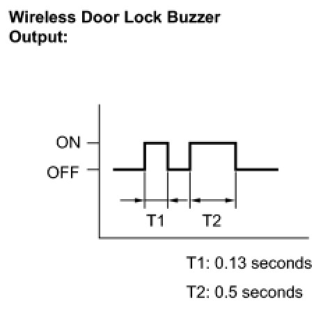 (d) Check the diagnostic outputs when the door control transmitter switch is held down. The diagnostic outputs can be checked by the interior light and wireless door lock buzzer patterns.