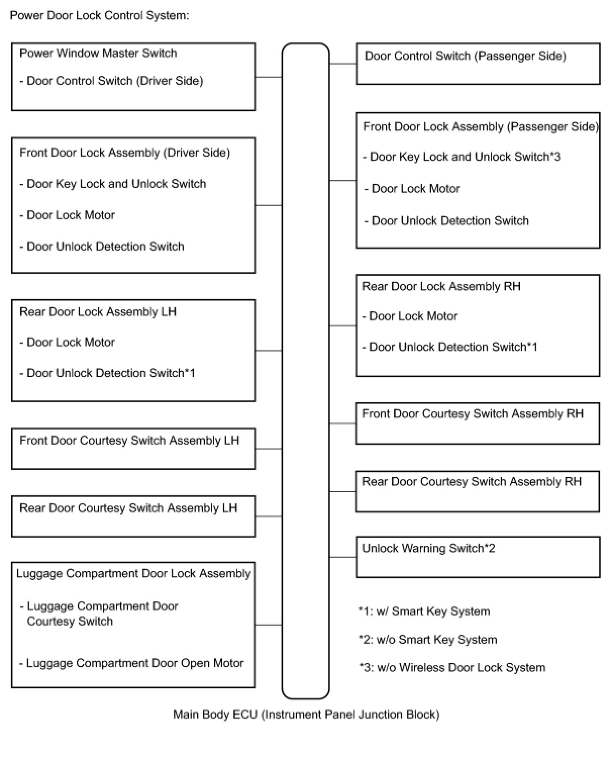 DOOR LOCK: POWER DOOR LOCK CONTROL SYSTEM: SYSTEM DIAGRAM; 2013 MY Corolla [07/2012 -]