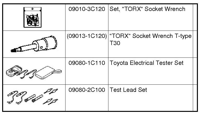 PREPARATION: DOOR LOCK: RECOMMENDED TOOLS; 2013 MY Corolla [07/2012 -]