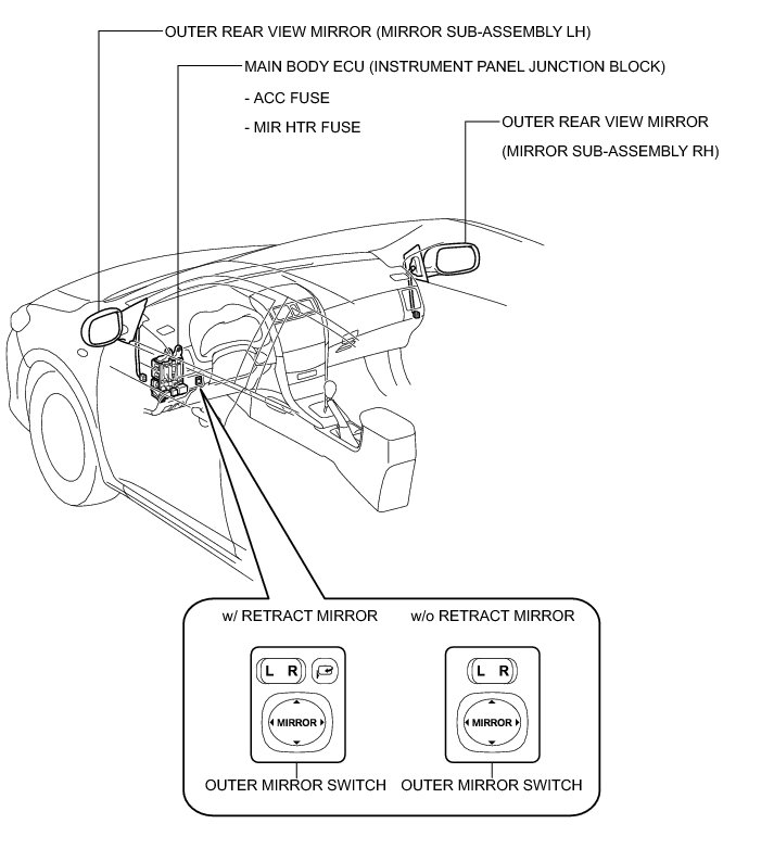 MIRROR (EXT): POWER MIRROR CONTROL SYSTEM: PARTS LOCATION; 2013 MY Corolla [07/2012 -]