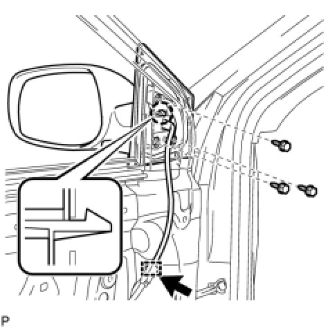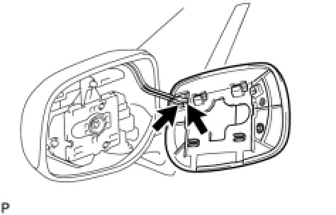 (d) Disengage the 2 guides at the upper part of the outer mirror as shown in the illustration.