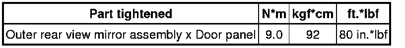 SPECIFICATIONS: MIRROR (EXT): TORQUE SPECIFICATIONS; 2013 MY Corolla [07/2012 -]