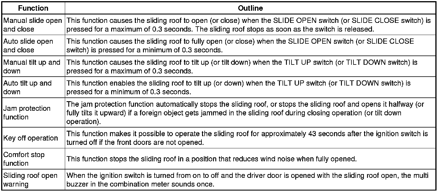 SLIDING ROOF / CONVERTIBLE: SLIDING ROOF SYSTEM: SYSTEM DESCRIPTION; 2013 MY Corolla [07/2012 -]