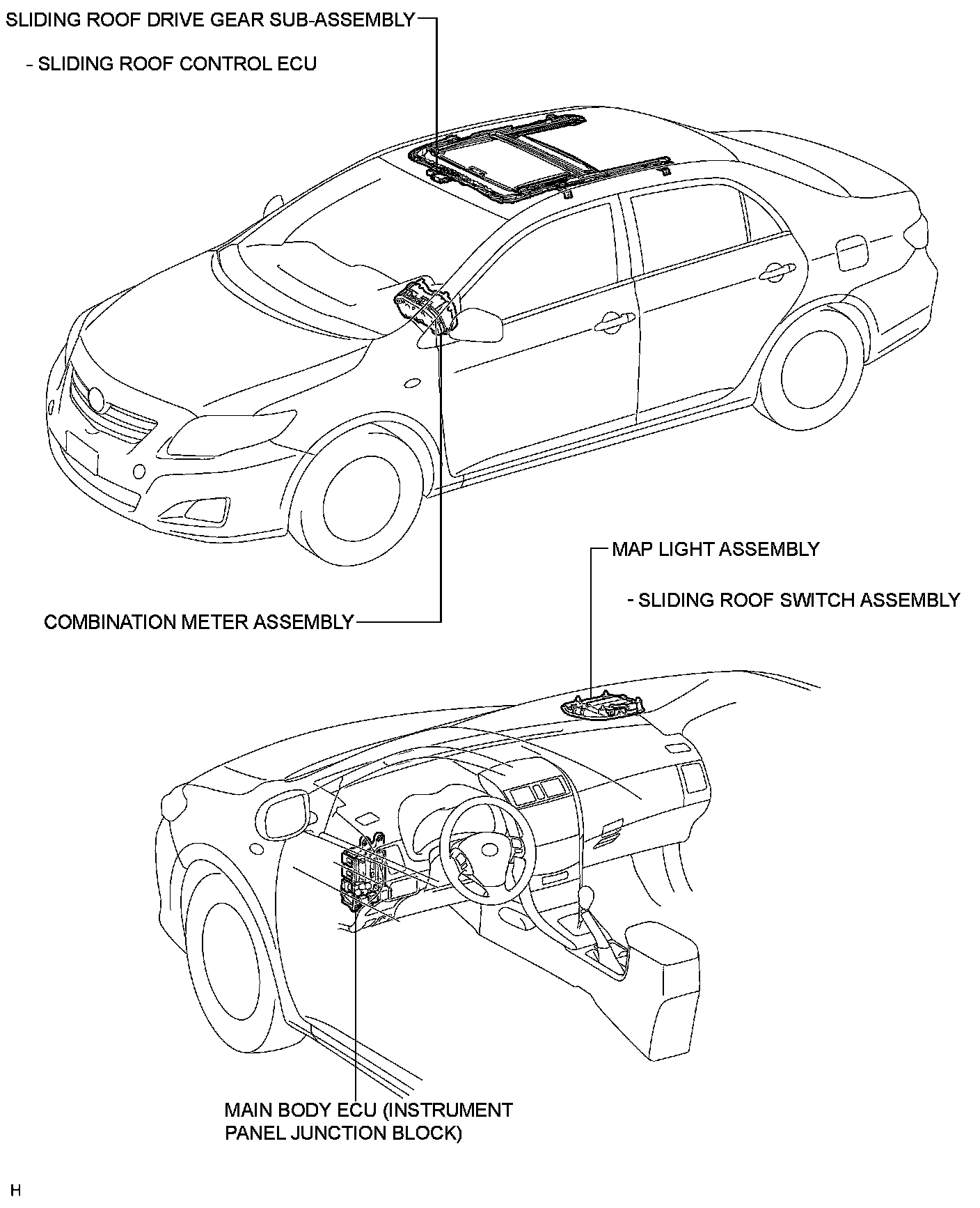 SLIDING ROOF / CONVERTIBLE: SLIDING ROOF SYSTEM: PARTS LOCATION; 2013 MY Corolla [07/2012 -]