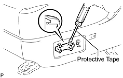 (a) Using a screwdriver with the tip taped, disengage the 2 claws and remove the reclining power seat switch knob.