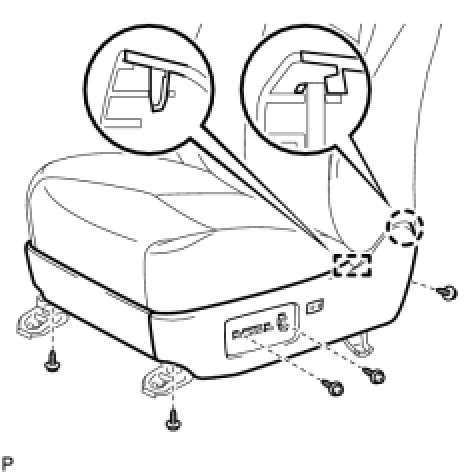(d) Disengage the hooks and the front seat cushion cover with pad.