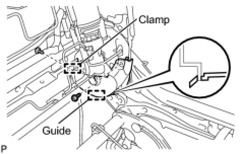 (c) Disengage the claw and the guide and remove the front seat cushion shield assembly.