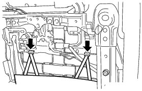 (d) Disengage the 4 claws and remove the 2 front seat headrest supports.