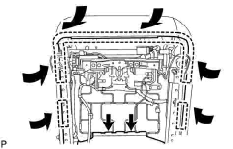 (a) Insert the guide and temporarily install the front seat cushion inner shield as shown in the illustration.