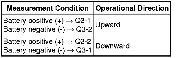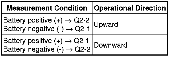(1) Check if the seat frame operates smoothly when the battery voltage is applied to the front vertical motor connector terminals.