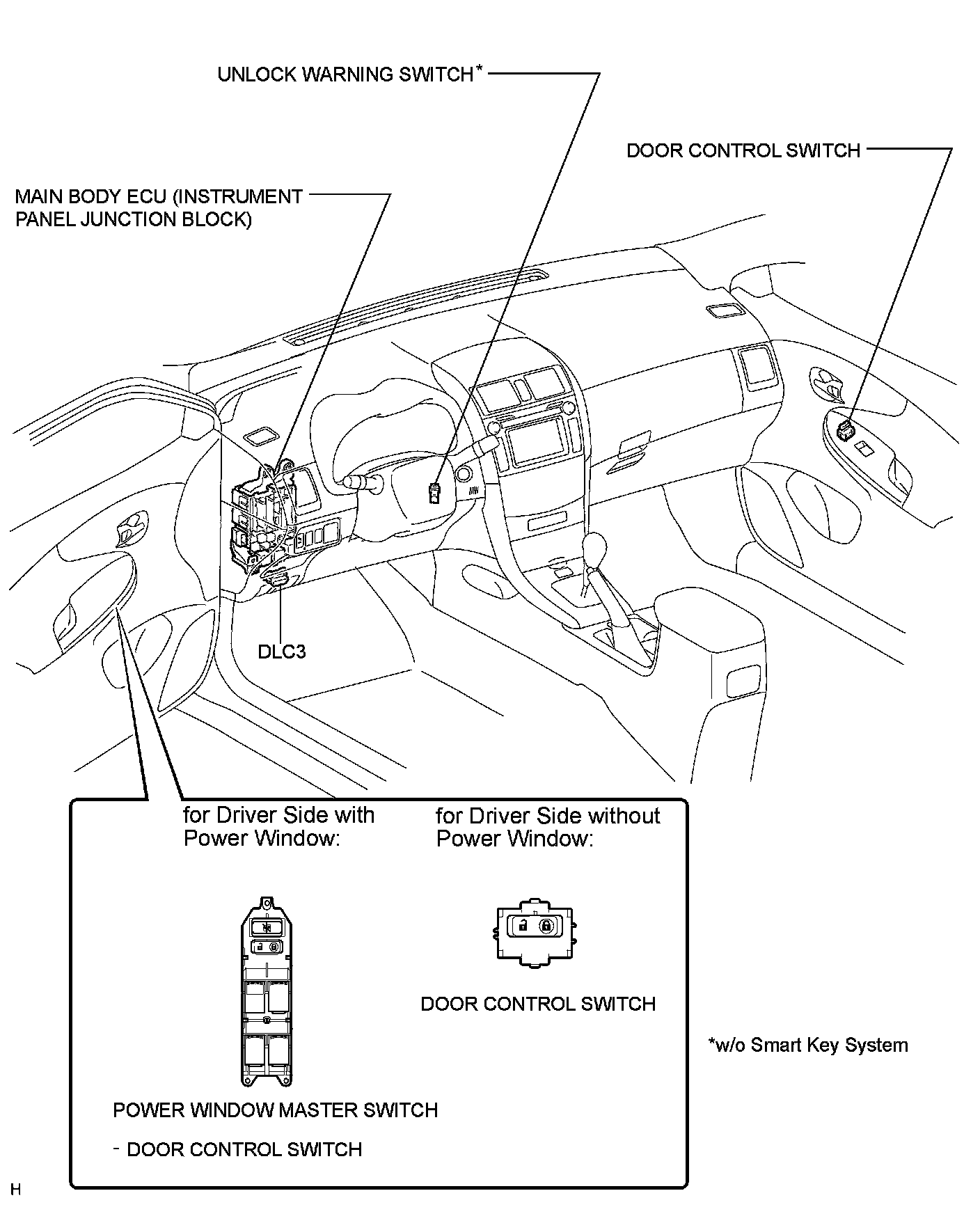DOOR LOCK: POWER DOOR LOCK CONTROL SYSTEM: PARTS LOCATION; 2013 MY Corolla [07/2012 -]