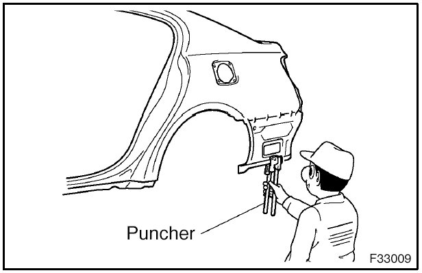 1. For areas where a spot welder cannot be used, use a puncher or drill to make holes for plug welding.