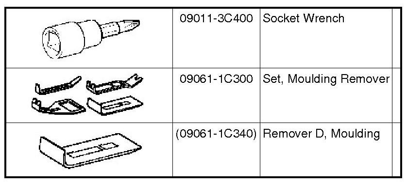 PREPARATION: EXTERIOR PANELS / TRIM: RECOMMENDED TOOLS; 2013 MY Corolla [07/2012 -]