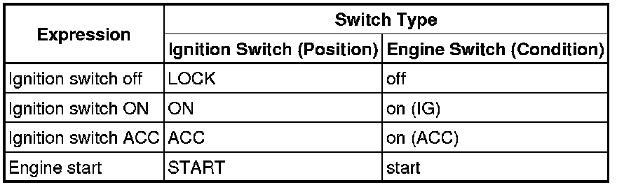 The type of ignition switch used on this model differs according to the specifications of the vehicle.