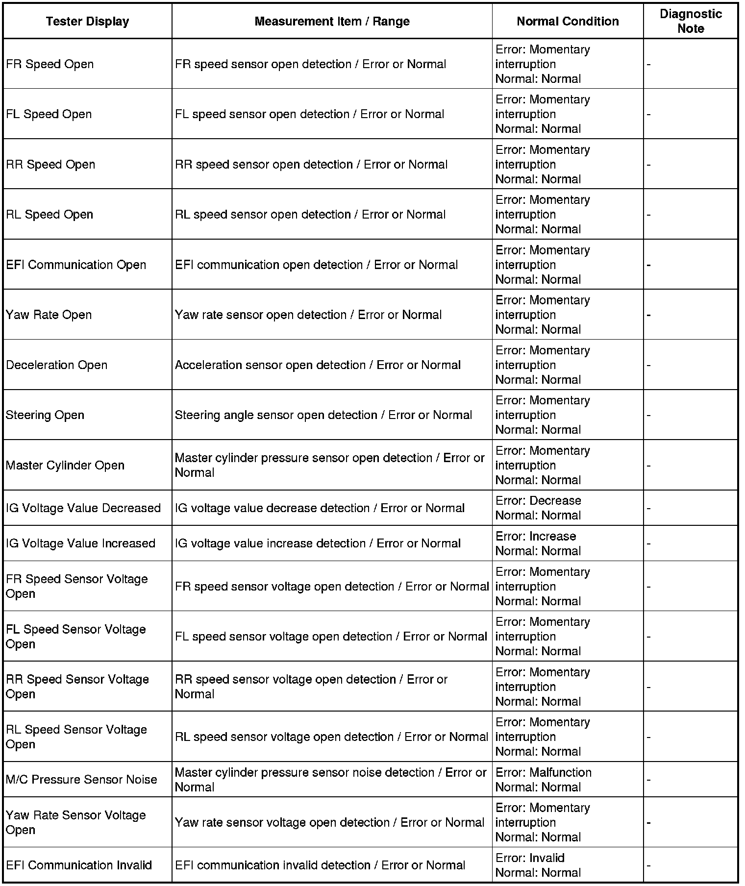 A momentary interruption (open circuit) in the connectors and/or wire harness between the sensors and ECUs can be detected using the ECU Data List function of the Techstream.