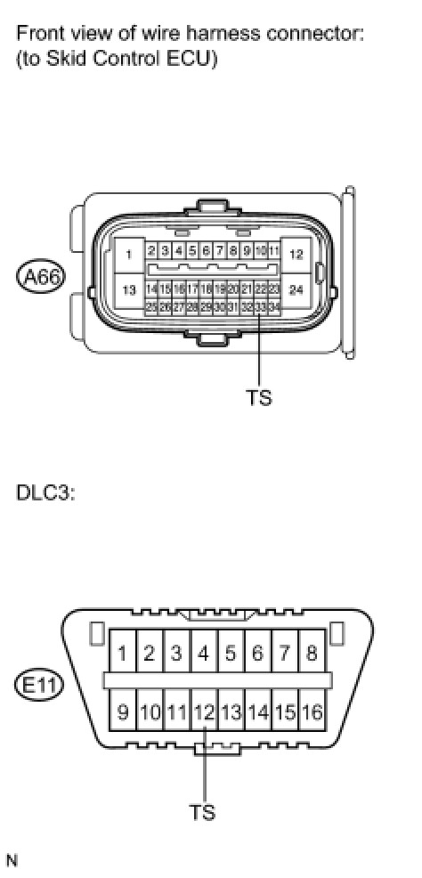 1. CHECK HARNESS AND CONNECTOR (SKID CONTROL ECU - TS of DLC3)