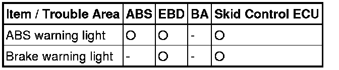 (a) If the skid control ECU detects a malfunction, the ABS warning and brake warning lights will come on in order to warn the driver.