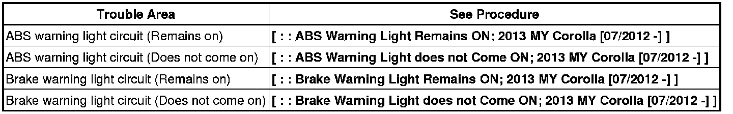 BRAKE CONTROL / DYNAMIC CONTROL SYSTEMS: ANTI-LOCK BRAKE SYSTEM: DIAGNOSIS SYSTEM; 2013 MY Corolla [07/2012 -]