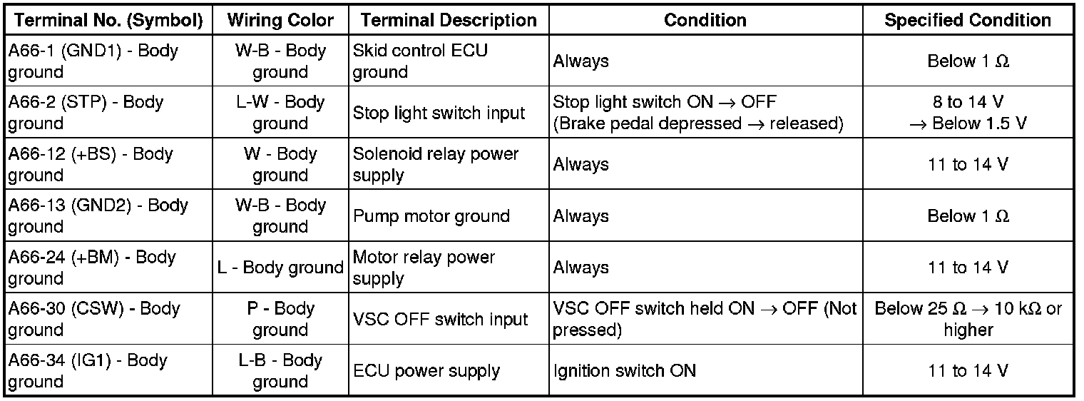 BRAKE CONTROL / DYNAMIC CONTROL SYSTEMS: VEHICLE STABILITY CONTROL SYSTEM: TERMINALS OF ECU; 2013 MY Corolla [07/2012 -]