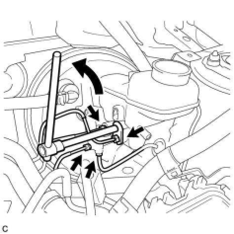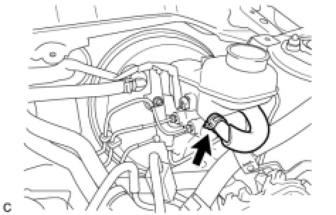 (c) Remove the 2 nuts, brake tube way and brake master cylinder sub-assembly.