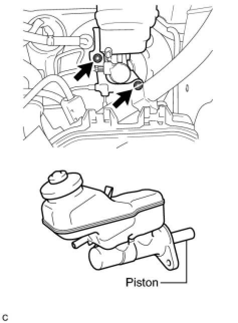 * Do not strike or pinch the master cylinder piston, and do not cause any damage to the master cylinder piston by any other means.