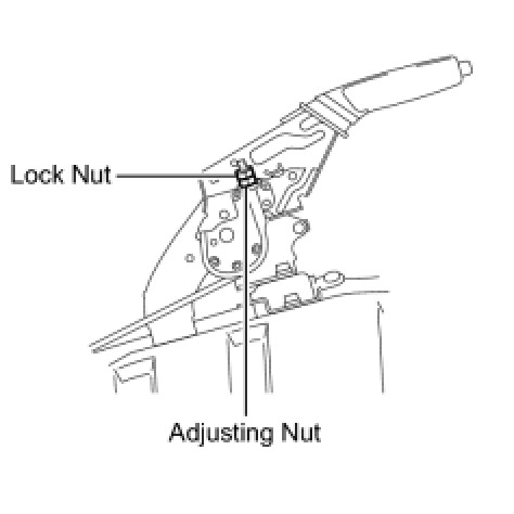 (e) Turn the adjusting nut until the parking brake lever travel is corrected to within the specified range.
