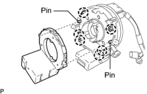 (a) Disengage the 6 claws and 2 pins, and remove the steering angle sensor from the spiral cable.