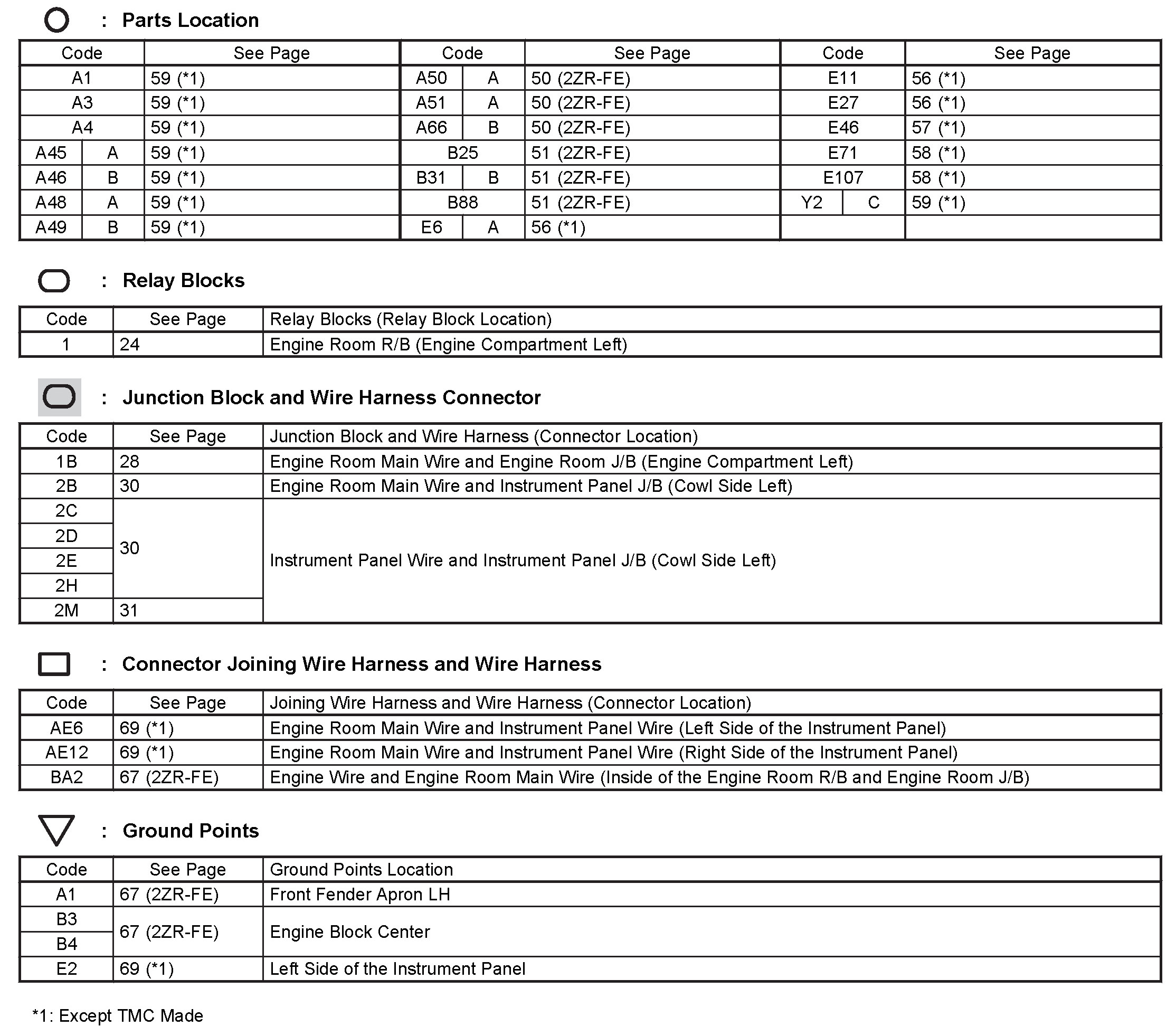 Locations: The locations of components, connectors, ground points, and splices referred to within these diagrams can be found at Vehicle Locations. Locations
