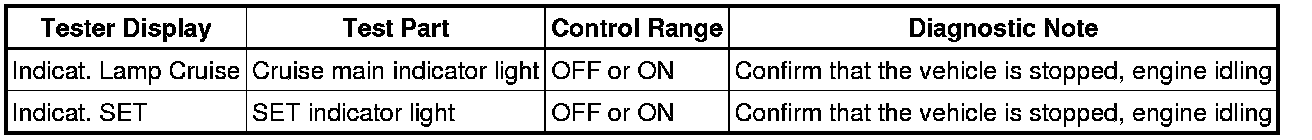 CRUISE CONTROL: CRUISE CONTROL SYSTEM: DATA LIST / ACTIVE TEST; 2013 MY Corolla [07/2012 -]