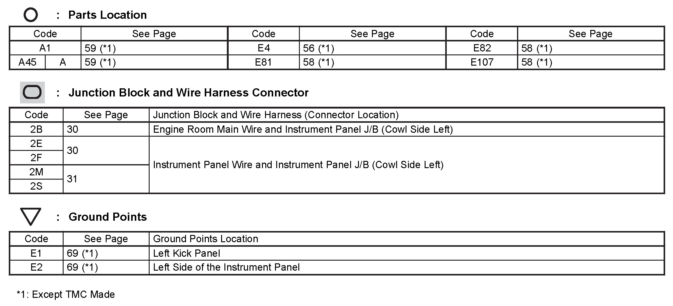 Locations: The locations of components, connectors, ground points, and splices referred to within these diagrams can be found at Vehicle Locations. Locations