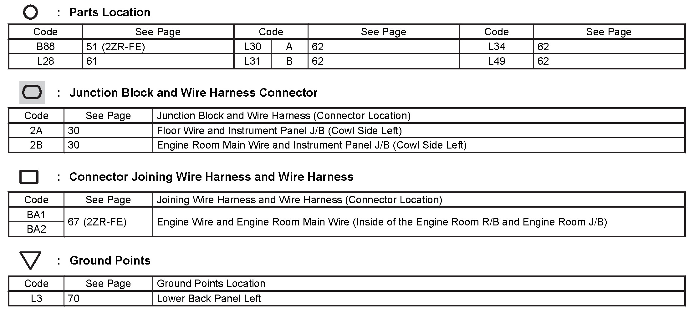 Locations: The locations of components, connectors, ground points, and splices referred to within these diagrams can be found at Vehicle Locations. Locations