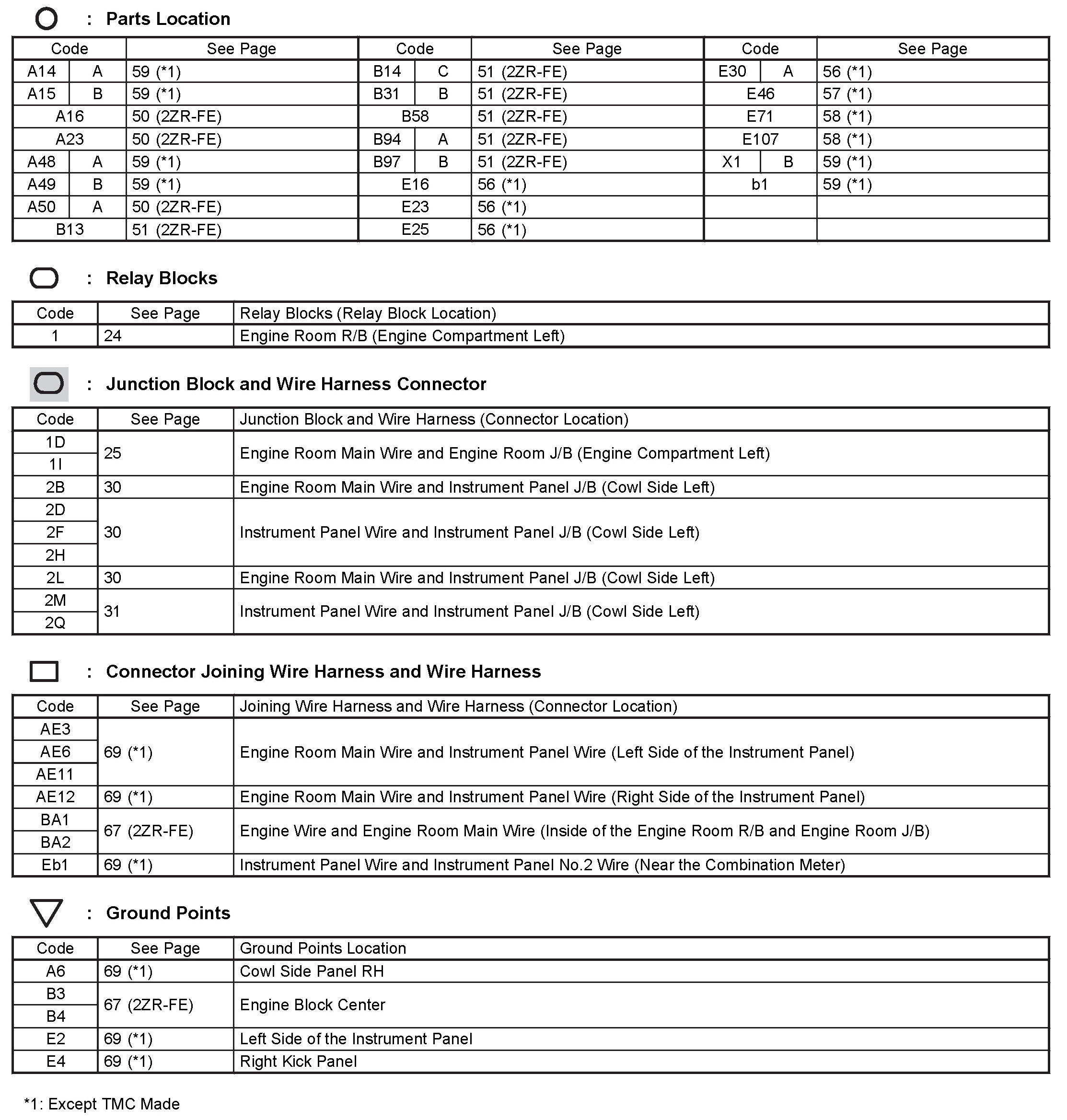 Locations: The locations of components, connectors, ground points, and splices referred to within these diagrams can be found at Vehicle Locations. Locations